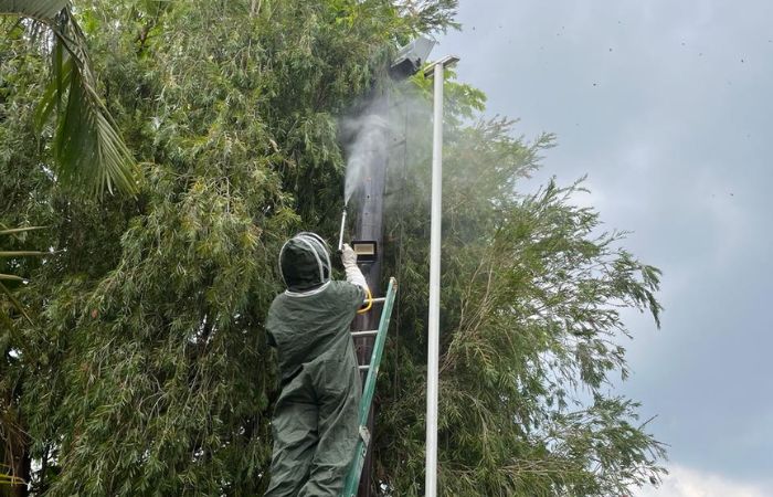 Extracción profesional de nidos y enjambres, garantizando seguridad y reduciendo riesgos de picaduras.